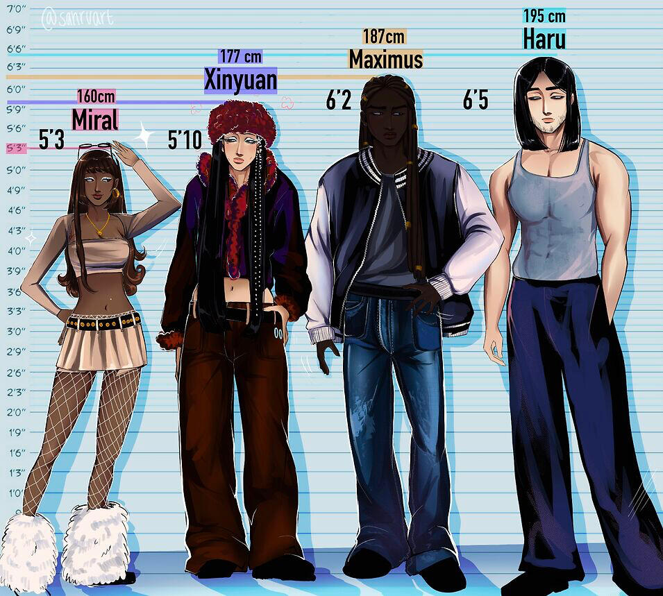 Currently I do not have a comprehensive condensed lore but this is my all British cast. Brazilian-Dominican, Chinese, Jamaican and Japanese in order, They are all 23 with Haru being 25 years old. I am currently working on a master doc with their lore + comic plan included. This will be released in the summer around June 2024.